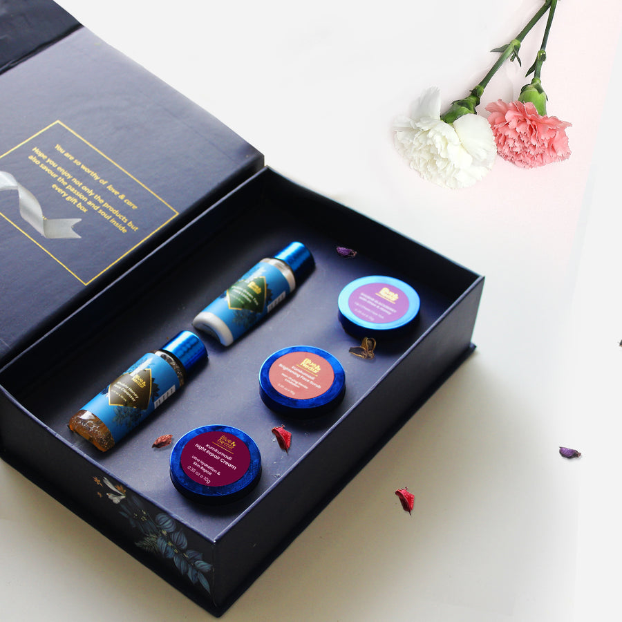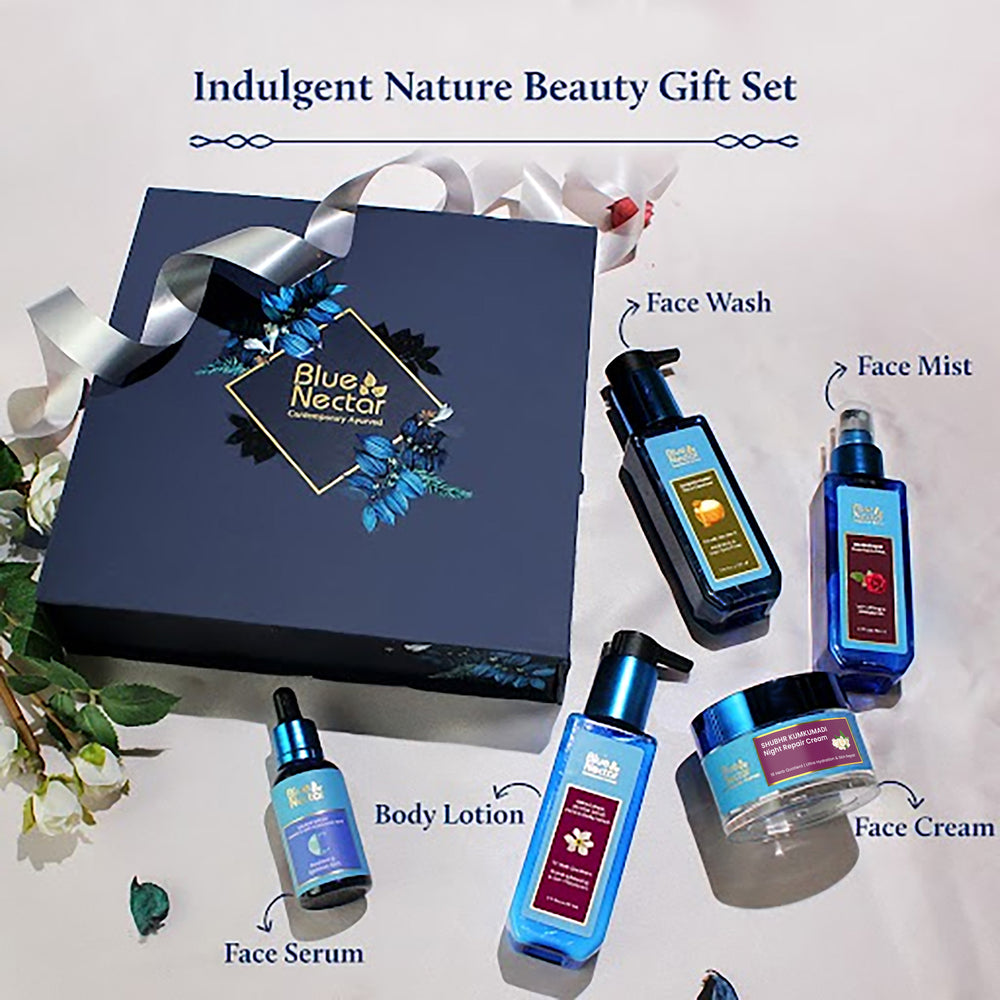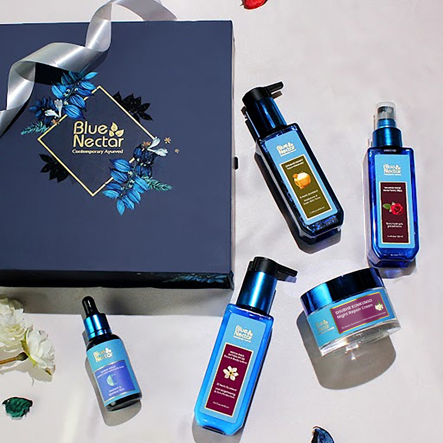Blue Nectar presents beautiful ideas of skincare gift sets as an experience to all senses. Forged from the best of Ayurveda with elements from the science of modern skincare, these sets holistically transform beauty and well-being. At Blue Nectar, nourishing creams, hydrating serums, and calming oils will make sure you're covered for healthy skin, glowing inside out.
