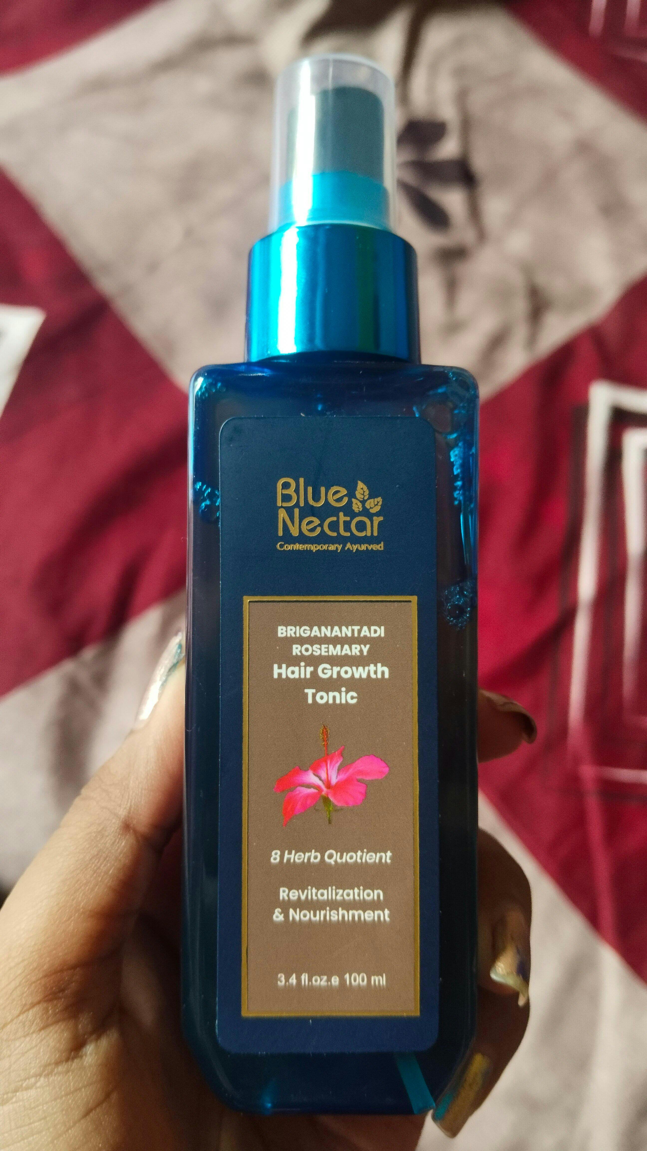 I’ve been using the Blue Nectar Hair Growth Tonic for some time and it really works well. It feels light on the scalp, has a pleasant herbal smell, and doesn’t make hair oily. I noticed less hair fall and some new hair growth. Great product with natural ingredients!