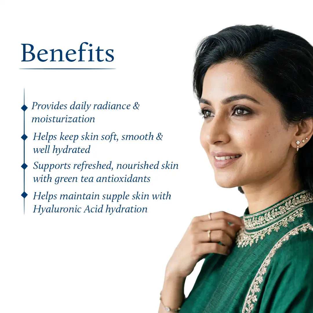 Hydrate and brighten your complexion with Shubhr Green Tea Face Lotion, that is fortified with Hyaluronic Acid and Vitamin C to facilitate skin repair and radiance. It is made with 14 powerful natural ingredients, like Beeswax, Almond oil, and Argan oil, it deeply moisturizes dry skin and helps lighten dark spots and uneven skin tone. This Vitamin C enriched face lotion is non-greasy and lightweight, making it suitable for all skin types - dry, oily, combination, and normal and provides a balanced hydration without feeling heavy. Each application imparts a soft, supple, and naturally radiant sensation to your skin, integrating the most effective elements of Ayurveda and contemporary skincare science.