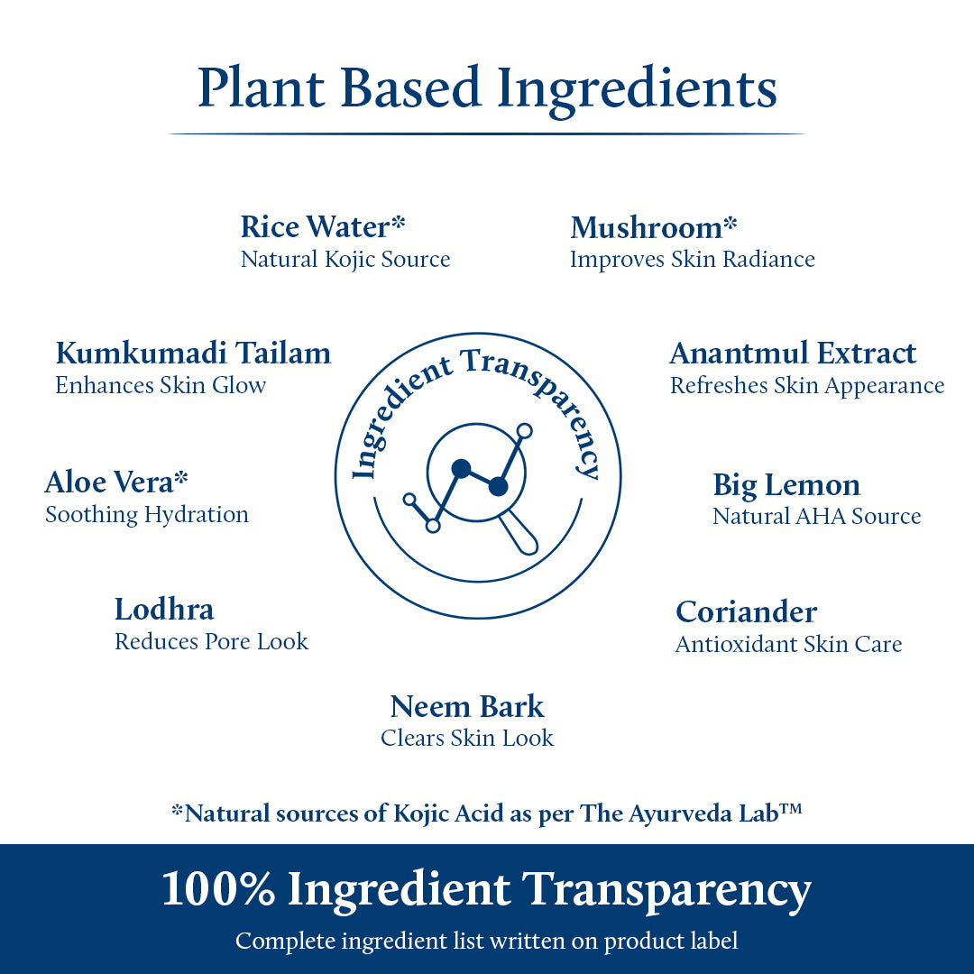 Infused with rice water and Ayurvedic extracts, it helps smooth uneven patches and restores a naturally balanced, glowing complexion.