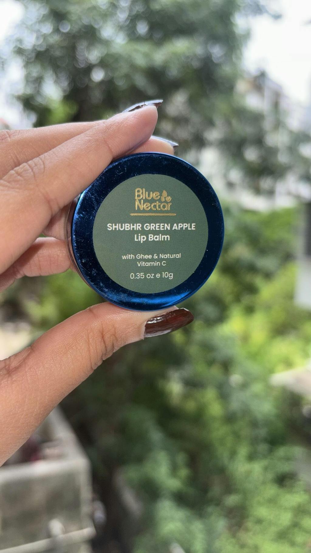 The luxurious Blue Nectar Shubhr Natural Lip Balm for Chapped Lips contains Organic Ghee and Vitamin C to nourish, moisturize, and heal dry, chapped lips. This creamy lip balm deeply moisturizes for 8 hours, leaving lips plump and smooth. Glossy coating enhances natural lip color for effortlessly beautiful lips.