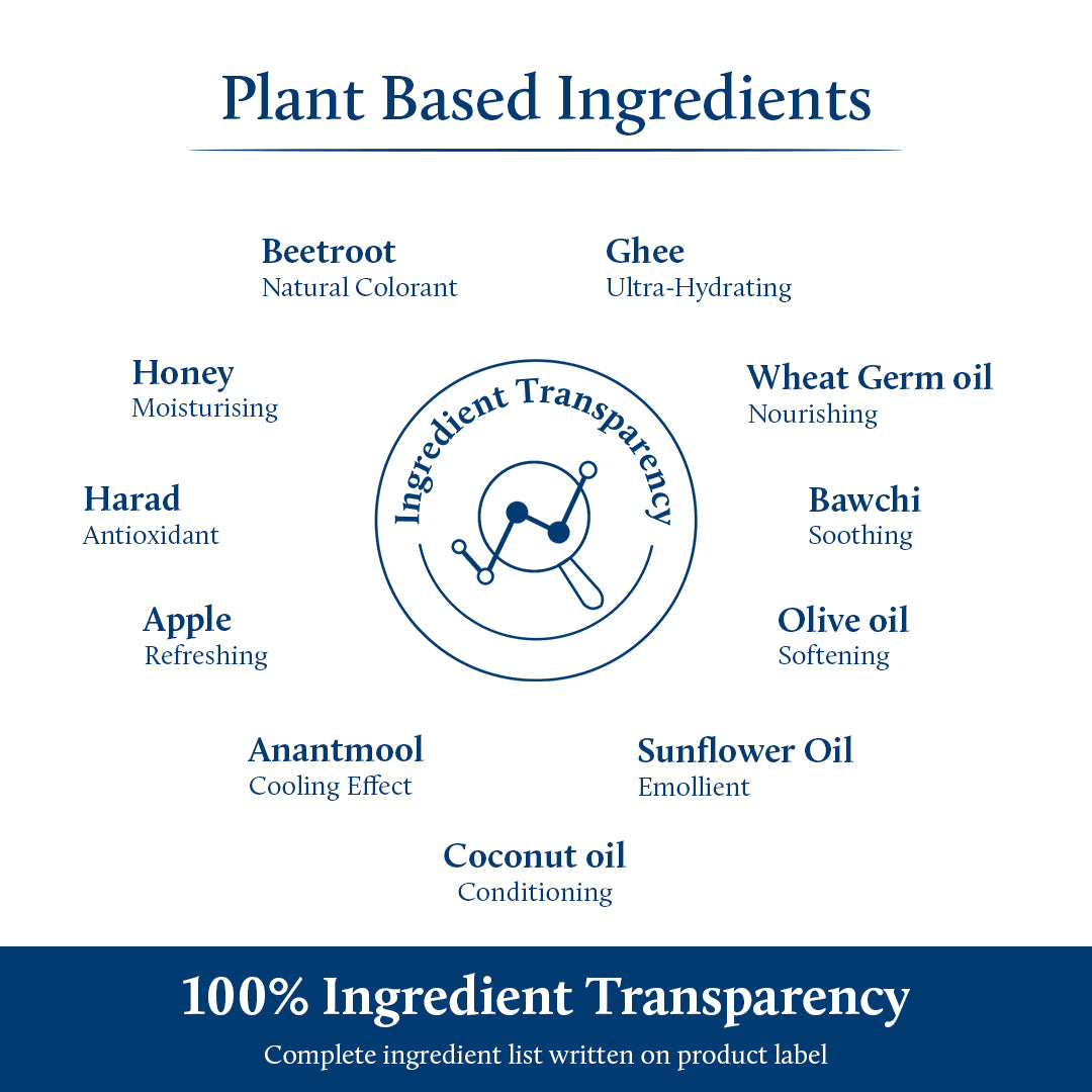 | Jamun/Rose/Lotus/Beetroot | Syzygium cumini / Rosa indica / Nelumbo nucifera / Beta vulgaris | Brightens lips, and provides antioxidant protection. |