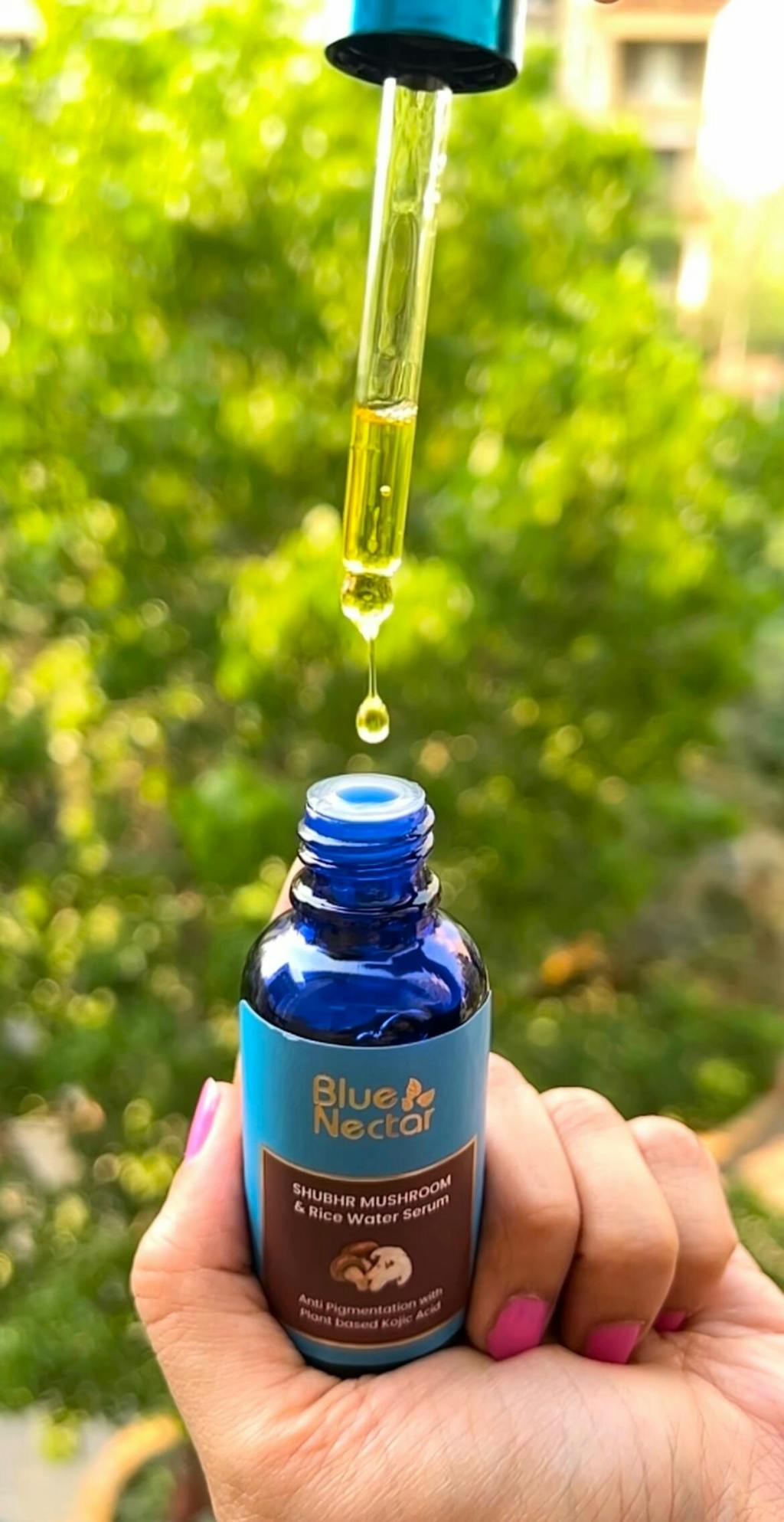 Shubhr Kojic Acid Serum targets pigmentation and dark spots. This is sourced from plant sources like fermented rice water & mushrooms. It's a 100% Ayurvedic formulation consisting of 13 Ayurvedic herbs. This rice water serum with mushroom extracts is suitable for all skin types and can be used by men or women. It reduces melanin production, which helps to control pigmentation. This lightweight, non-greasy serum provides a natural way to address pigmentation, with the benefits of mushrooms and fermented rice water.