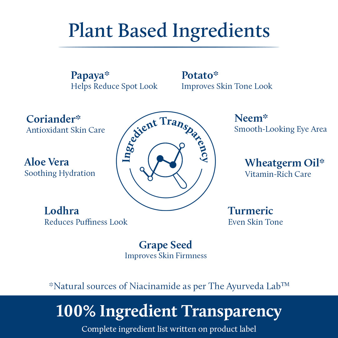 Niacinamide from papaya and potato starch brightens the under-eye area, reducing dark circles and restoring a visibly even skin tone.